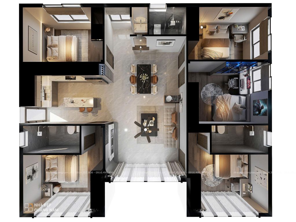 Khu vực phòng ngủ được thiết kế như những “khoảng trốn” riêng tư, phản ánh cá tính và sở thích của từng thành viên. Có người yêu sự ấm cúng tĩnh lặng, có người đam mê công nghệ hiện đại, và cũng có người trân trọng tuyệt đối sự riêng tư. Dù khác biệt, mỗi không gian đều được tối ưu ánh sáng tự nhiên và gió trời, mang đến bầu không khí trong lành và thư thái mỗi ngày.
